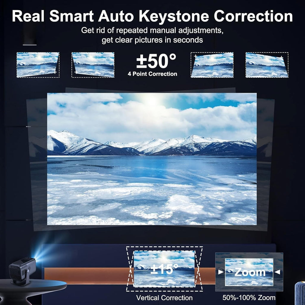 Denne produktet er en Android 13.0 smart projektor med innebygd operativsystem, designet for å levere skarpt bilde og høy ytelse. Med native 1080p oppløsning, støtte for 4K HDR, 300 ANSI lumen lysstyrke og kontrastforhold på 8000:1 får du levende farger og detaljert bilde. Projektoren har WiFi 6 og Bluetooth 5.0 for smidig trådløs tilkobling og støtter skjermspeiling via Airplay og Miracast.