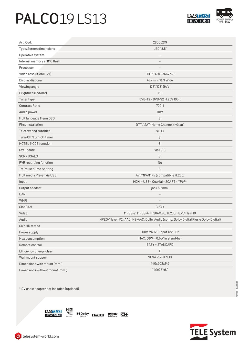 Full HD TV 19 tommer 12V DC 100-240V for båt, campingvogn, bobil DVB-T2 DVB-S2 VESA 100x100 PALCO 19LS13