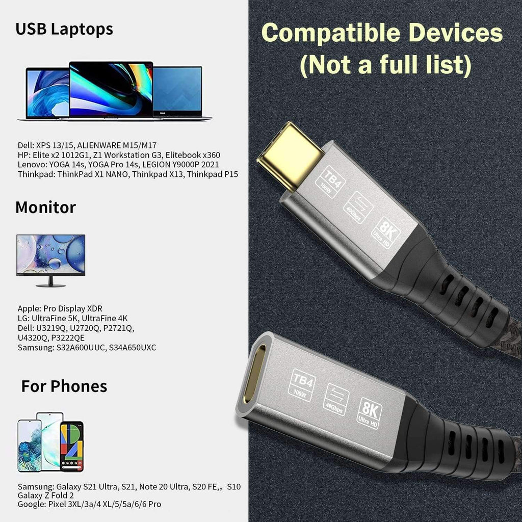 NÖRDIC 1m Thunderbolt 4 forlengelseskabel, USB-C hann til hunn, 240W hurtiglading, 40Gbps, 8K 60Hz