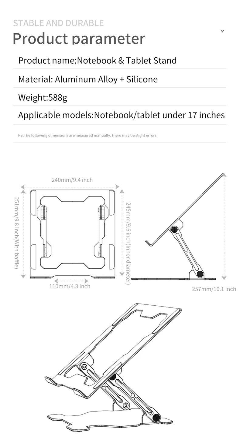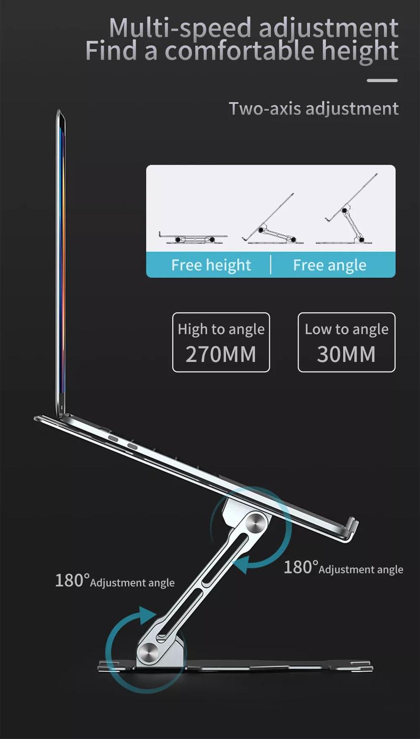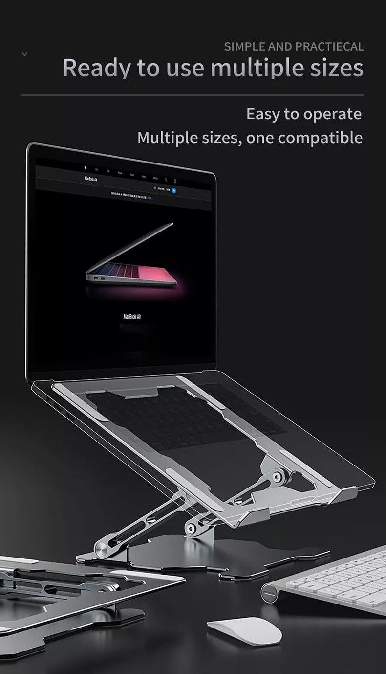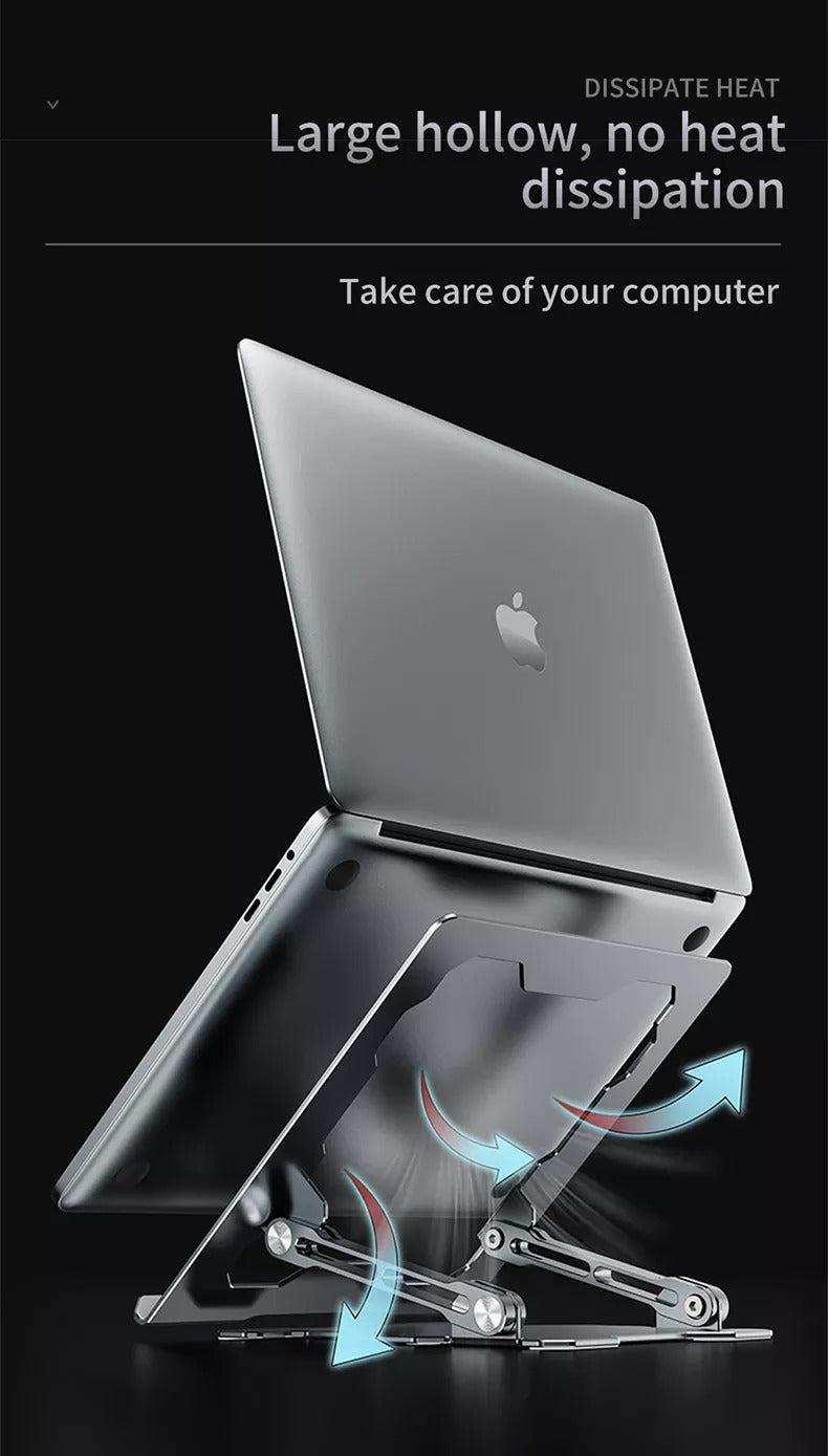 NÖRDIC bærbar stativ i aluminium for opp til 17" justerbar høyde for bærbar PC-stativ sølvfarget