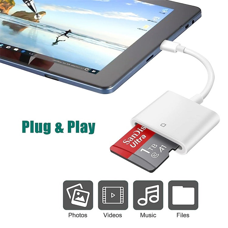 NÖRDIC Lightning-kortleser 2 spor SD, MicroSD 1xLightning-lading UHS-I